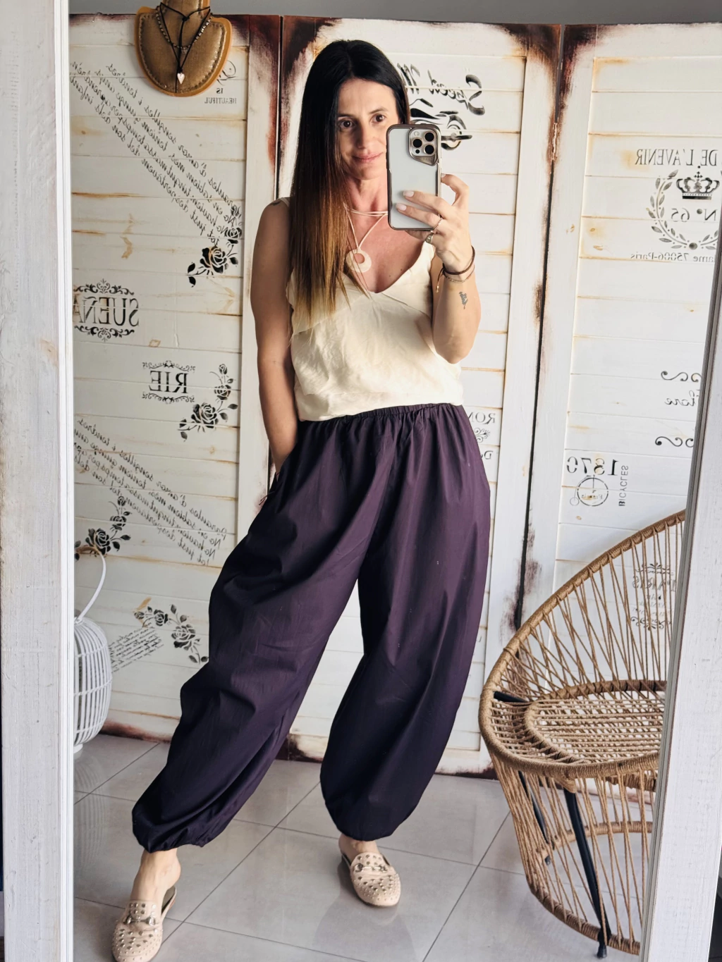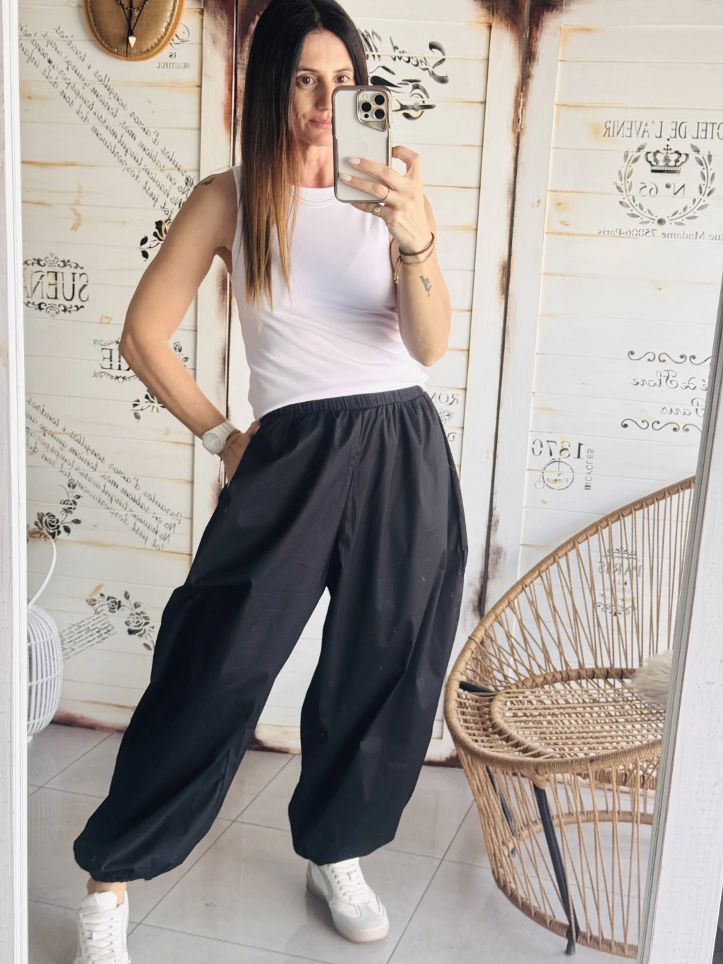 Pantalón bombacho de poplin elastizado
